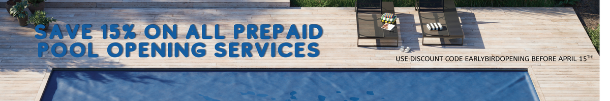 Early Bird Discount: In order to take advantage of the 15% off discount, the estimated labor charges must be paid before the 15th of April. Once the pool is open and all of your chemicals, parts, etc have been added to your account, we will send you an invoice or contact you for payment on the remaining balance.